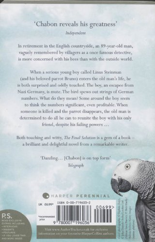 The Final Solution A mute boy escapes Nazi Germany with an African grey parrot and wanders into the live of an 89-year-old man rumored to be a once-famous detective. What is the meaning of the mysterious strings of numbers the bird spews out, and is the answer beyond the reach of the famed sleuth? Full description